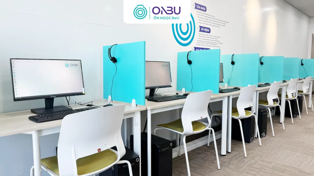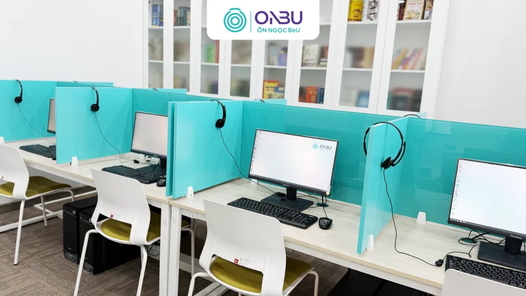 ONBU đầu tư cơ sở vật chất phòng thi thử tạo sự tiện lợi và theo các tiêu chuẩn giống phòng thi thật: máy tính cấu hình mạnh, được kiểm tra định kỳ; tai nghe chống ồn đạt chất lượng cao; hệ thống internet dự phòng; ánh sáng ổn định; ghế ngồi thiết kế công thái học để tránh mệt mỏi khi làm bài dài. Không gian phòng thi được cách âm, đảm bảo sự tập trung tuyệt đối cho Học Viên. Ngoài ra, toàn bộ quy trình đều tuân thủ nguyên tắc bảo mật – Học Viên không sử dụng thiết bị cá nhân, không mang vật dụng vào phòng thi.
